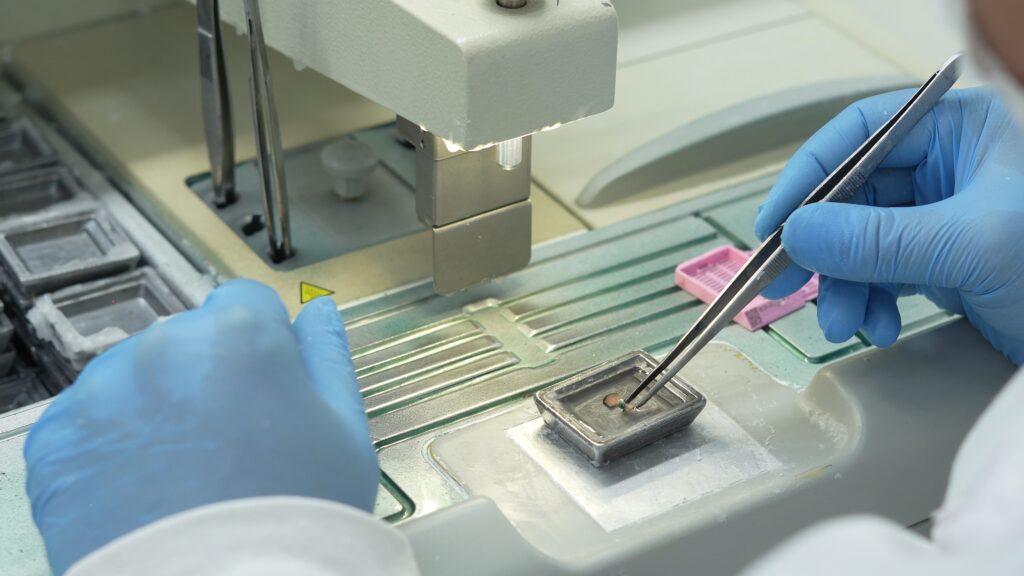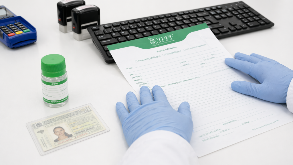 Após a coleta, o material passa por uma série de etapas fundamentais. Cada uma delas existe para reduzir riscos e aumentar a precisão diagnóstica.